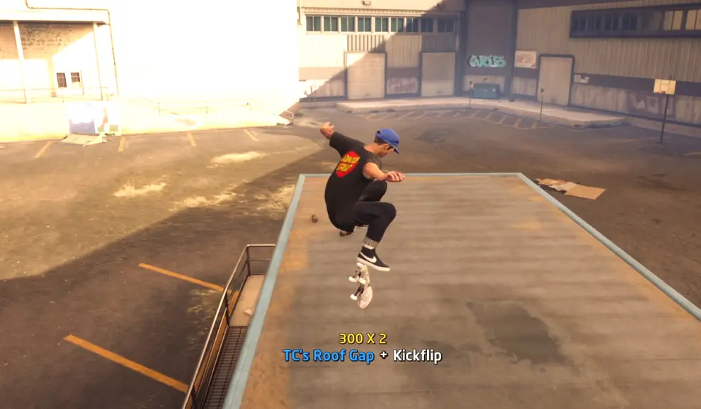 Kickflip tc s roof gap. Get the secret tape. This gap is worth 250 in game points.