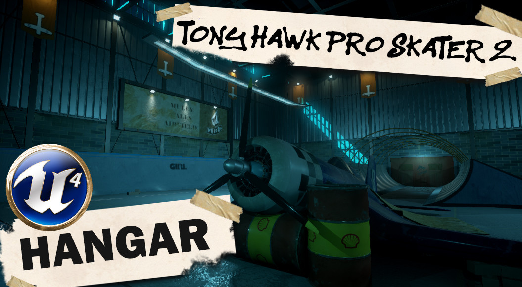 The hangar is a level that first appeared in tony hawk s pro skater 2. The aim of the park is to complete goals and challenges including finding the secret tape collecting skate and so on. All gaps in the hangar air over the door 500 points.